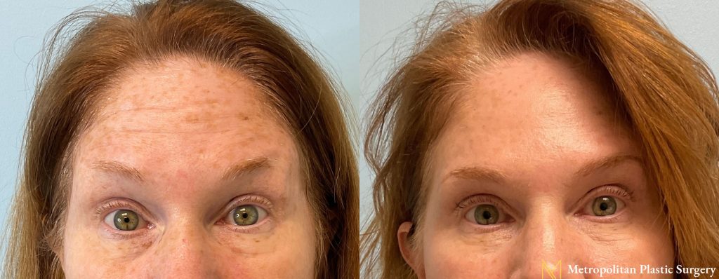 This 56 year old female came into the office for a Botox treatment. Our nurse Kelsey injected 46 units to smooth her forehead and decrease her worry lines (elevens). Here are her beautiful results.